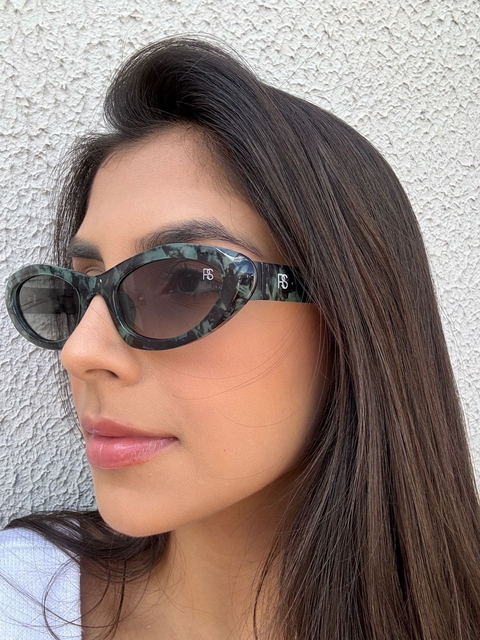 Prepare-se para arrasar com os Óculos de Sol Oval Lola - Verde Degrade Camuflado - Acetato! Se você quer proteger seus olhos com estilo e ainda se destacar na multidão, esses óculos são seu novo melhor amigo.